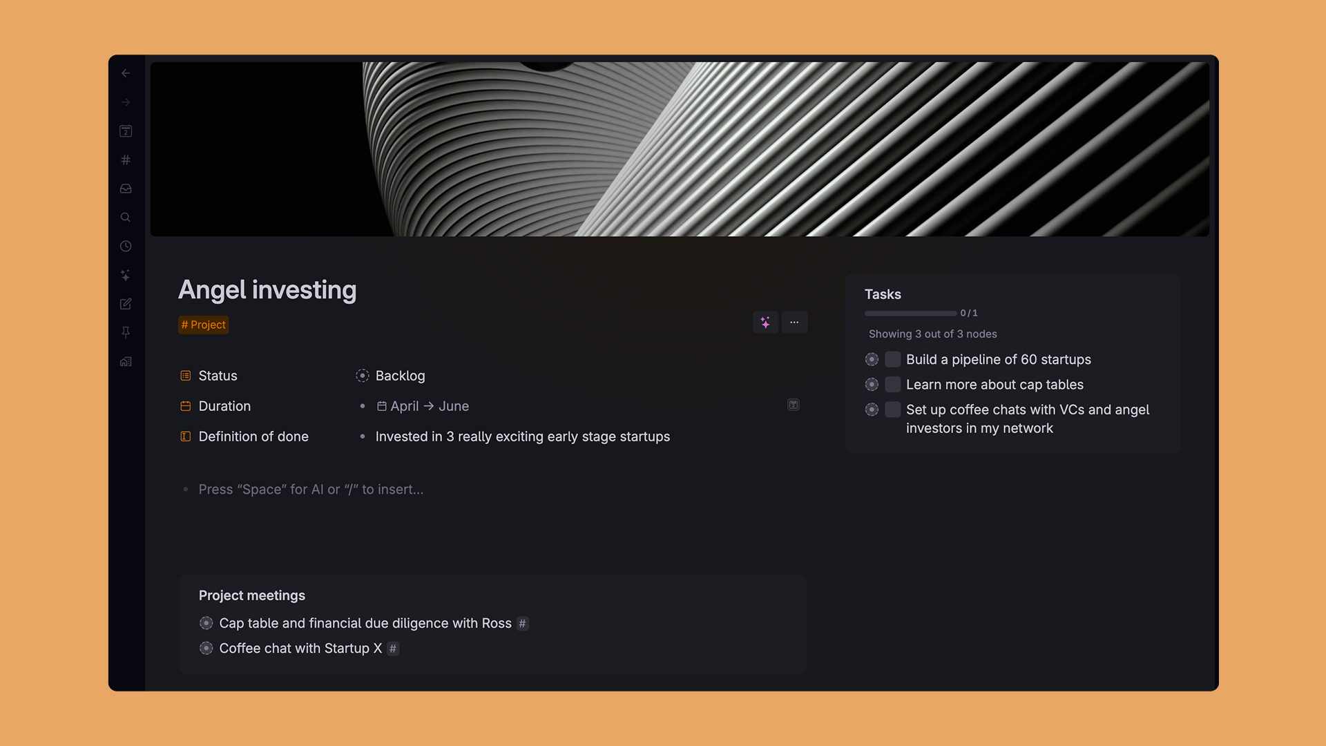 “Tana completely transformed my life by allowing me to merge my professional and personal worlds into one cohesive graph.”