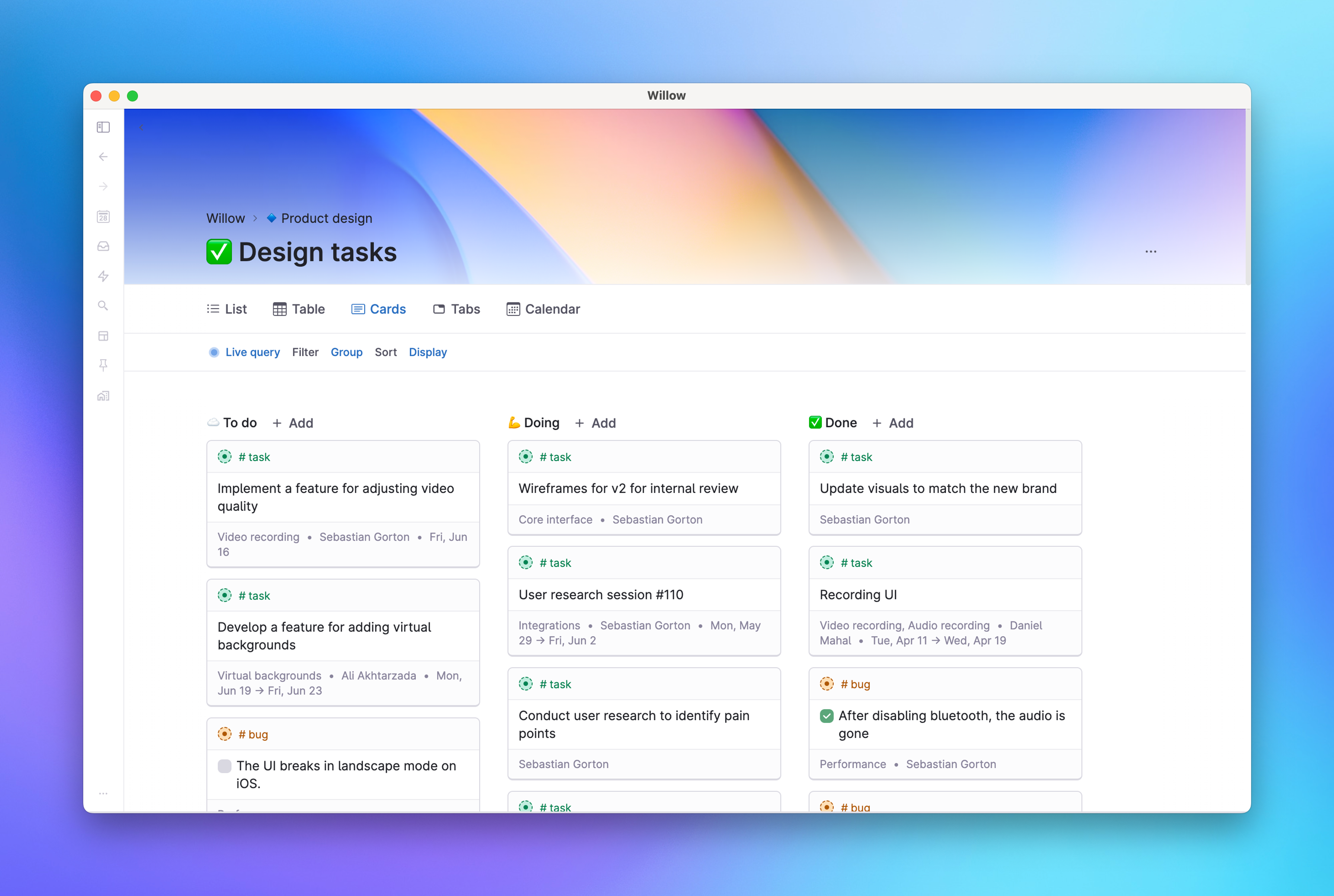 Within the View settings, use Filters, Group, Sort and Display to engage with the things you capture. With the amount of information that a person is able to generate nowadays, it is easy to feel overwhelm. These tools are meant to give you control over exactly what you want to see, and how you want to see it.