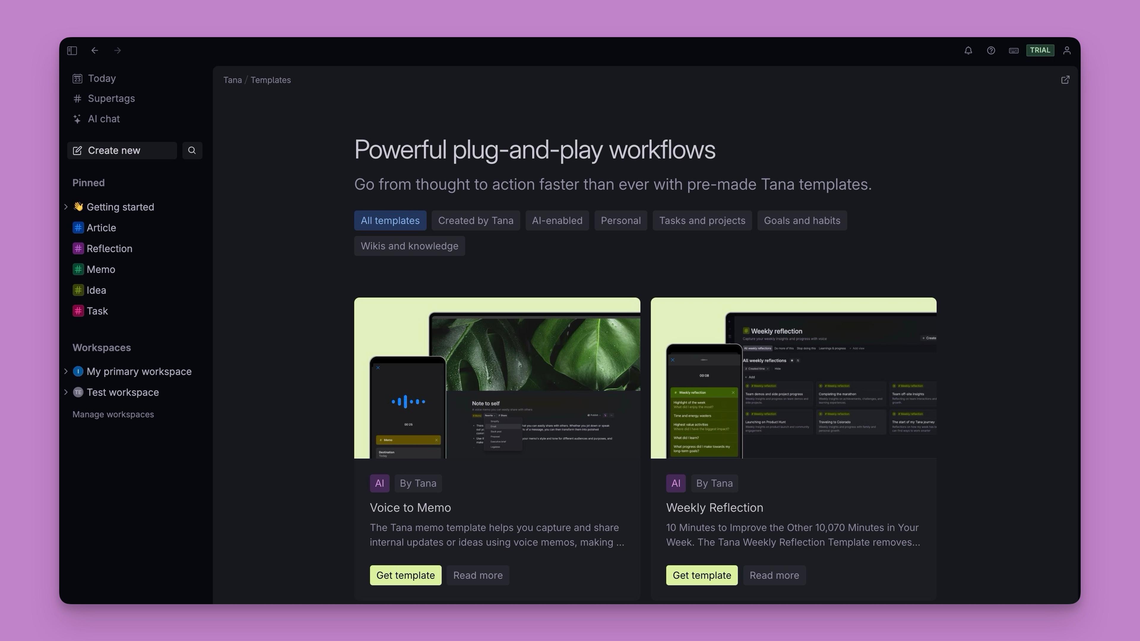 ArticleStop duct-taping your workflows: the Tana Template store is hereTired of piecing together tools just to get a decent workflow? Workflows don’t need to start from scratch every time. The Template Store is a new way to install live, composable workflows inside your Tana workspace.