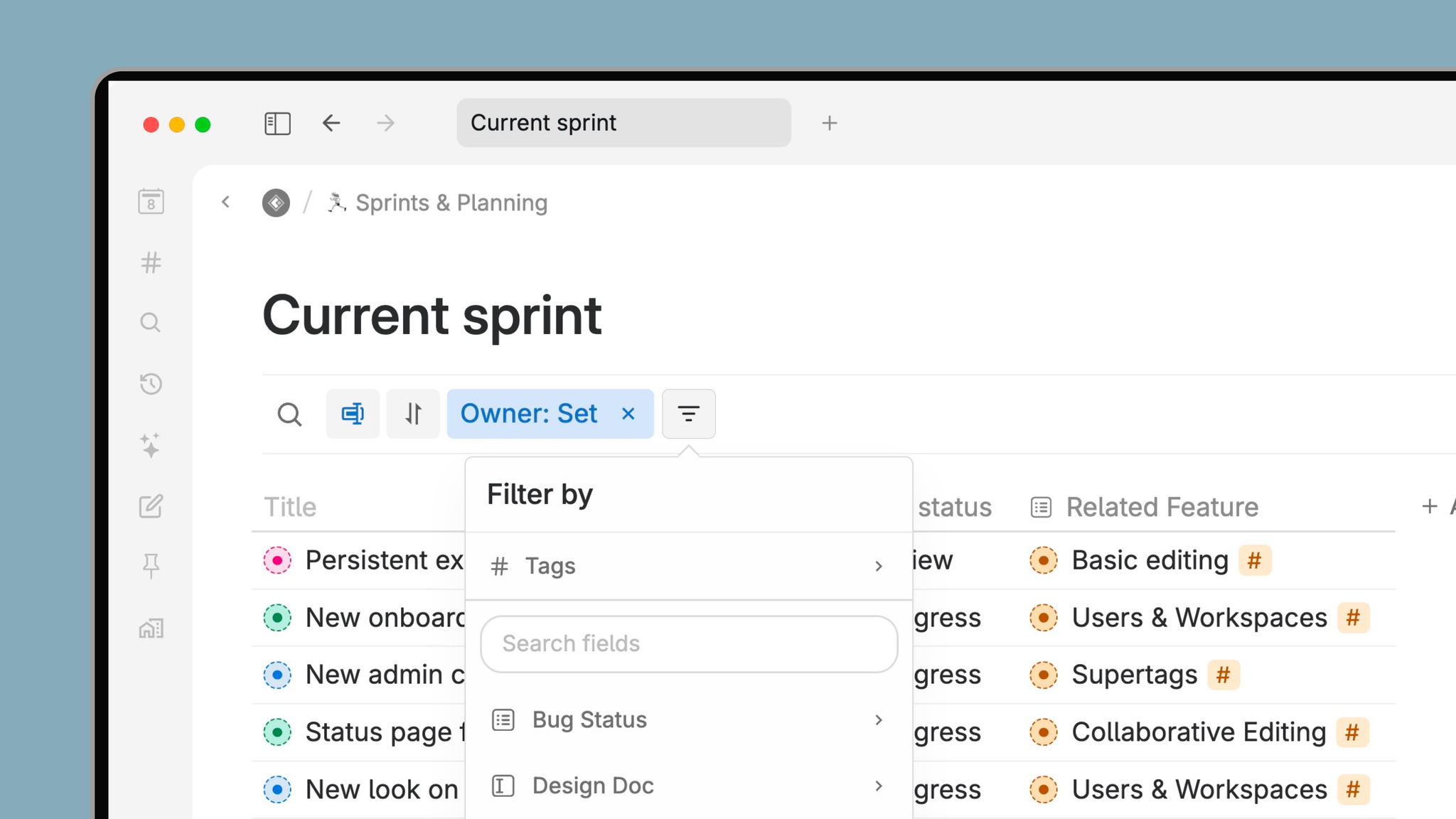 The new view toolbar gives you instant control over how you see and organize information in Tana. Filter, sort, group and change display with a single click or keystroke, so you can shift perspectives quickly and stay focused on the work that matters.