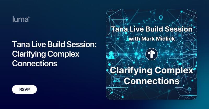 EventTana Live Build: Clarifying Complex ConnectionsMost people organize information the only way they’ve been taught: lists, folders, outlines, buckets. That works until reality stops being simple; when people play multiple roles, assignments and responsibilities overlap, and relationships aren’t neatly hierarchical. At that point, lists tangle, categories collide, and structure breaks down. This session will explore how to model that kind of relational complexity in Tana, using structure that adapts as connections shift, rather than collapsing when things become interconnected.