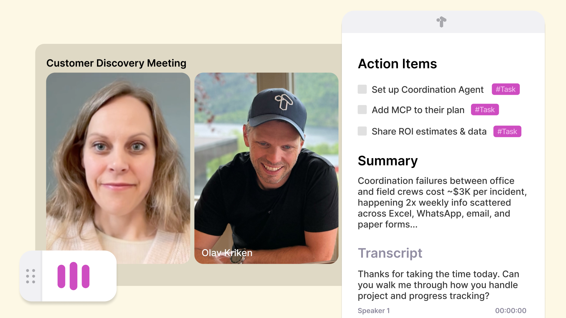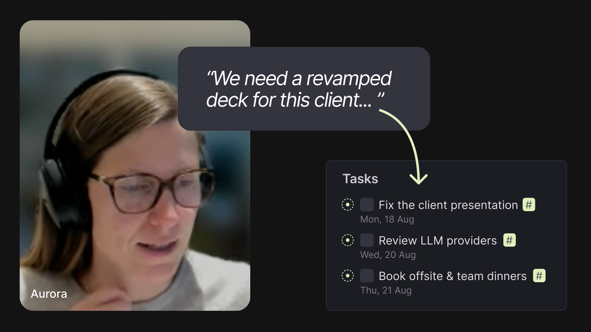 Stop checking 15 different apps to stay on top of things. Get action items from your meetings directly to your task boards in Tana. Reliably following up on meetings has never been this smooth.