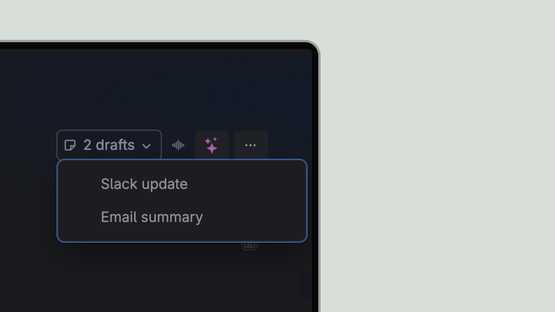 Review your update in the draft panel where you can make final edits. Copy the text to paste elsewhere, move it to your workspace, or just close to keep it as a draft attached to the meeting.